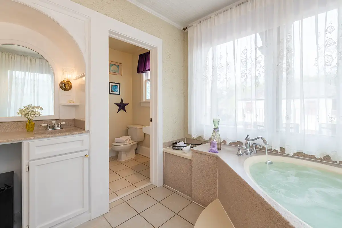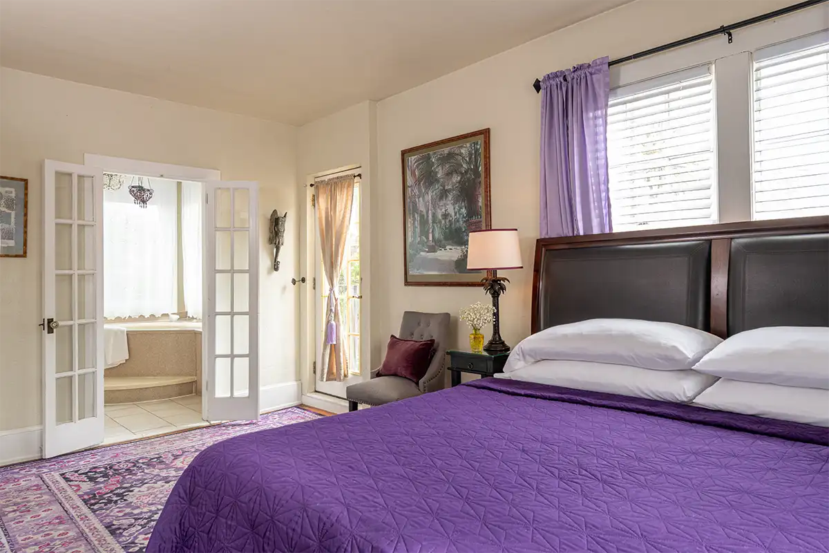 Valencia is one of the most requested rooms at our downtown Saint Augustine B&B, designed for couples seeking a romantic retreat. The second-floor space features a king bed, rich textures, and an emphasis on tranquility. The large, private bath features a jetted tub for two and a separate shower, providing ample space to relax and recharge.
